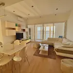 تشتمل شقة First Row To The Sea بمساحة 90 مترًا مربعًا على الفناء والشرفة مع تلفزيون بشاشة مسطحة مع قنوات فضائية والتلفزيون، فضلاً عن وسائل الراحة مثل نظام التحكم المناخي. كما تمّ تجهيز مكان الإقامة بالصالون. تتوفّر أسرّة مع الوسائد غير المسببة للحساسية تحت تصرف الضيوف. يشتمل الحمام على شطافة بيديه وحوض استحمام سبا والدوش المتحرك، كما تمّ تجهيز الحمام بمجفف الشعر والمناشف.